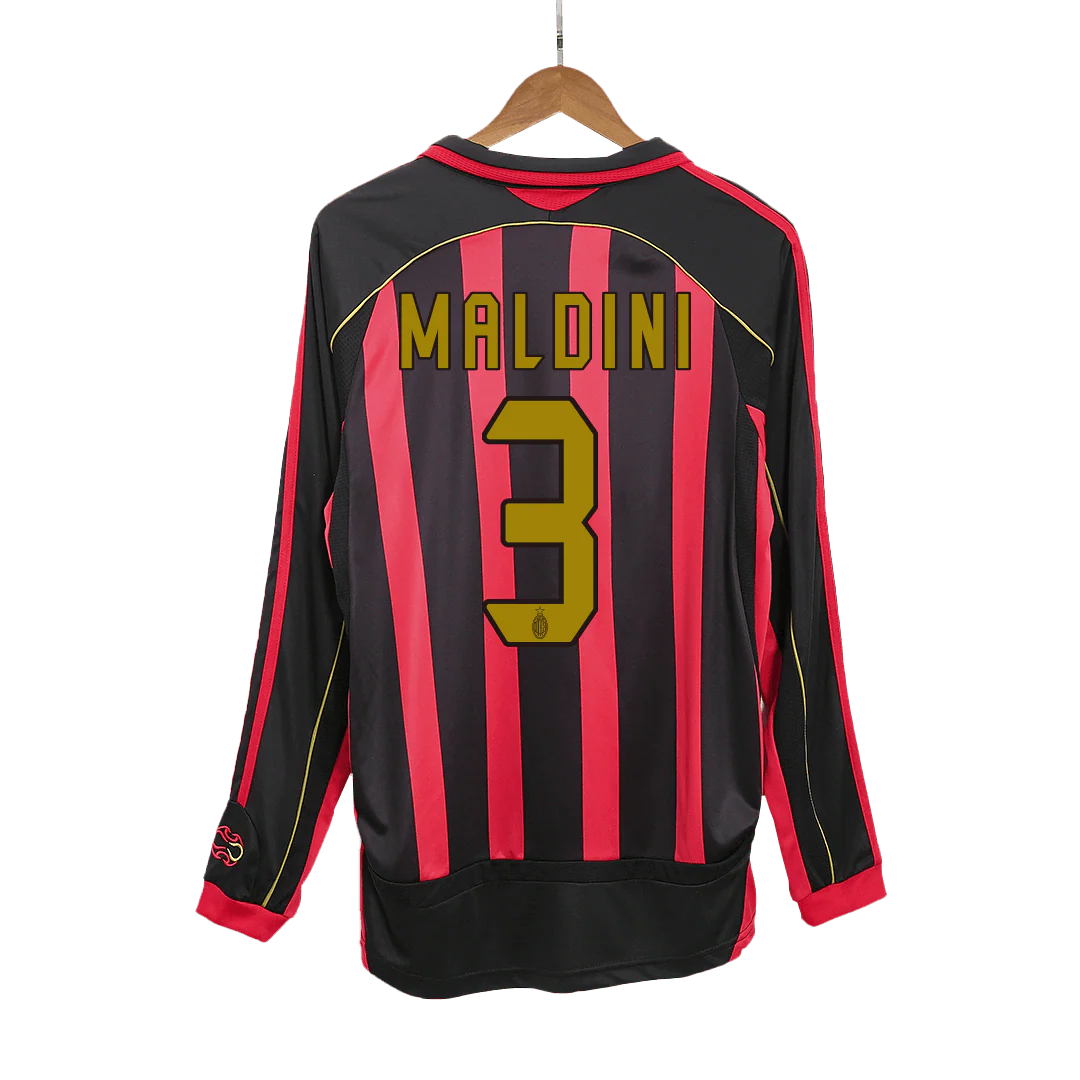 Retro MALDINI #3 2006/07 AC Milan Home Long Sleeve Soccer Jersey